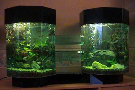 Name: Ian Tullett Tank Details: Twin 38cm Octagonal x 50cm deep The Fish: Clown loaches, flying foxes, angel fish, siamese fighting fish and assorted tetras and barbs.